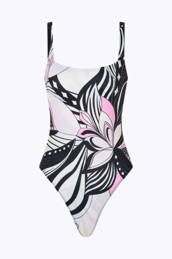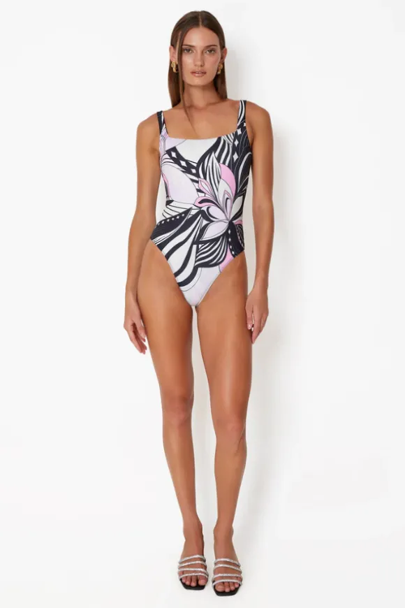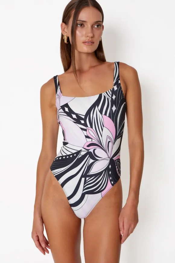 Introducing the Cin Cin Ballet Classic Swimsuit in Allegro, a bodysuit-inspired swimsuit designed with paneling for a flawless, form-hugging fit. The Allegro print features a striking retro graphic in a candyfloss and black color palette, offering a timeless and elegant vibe with a touch of vintage flair.