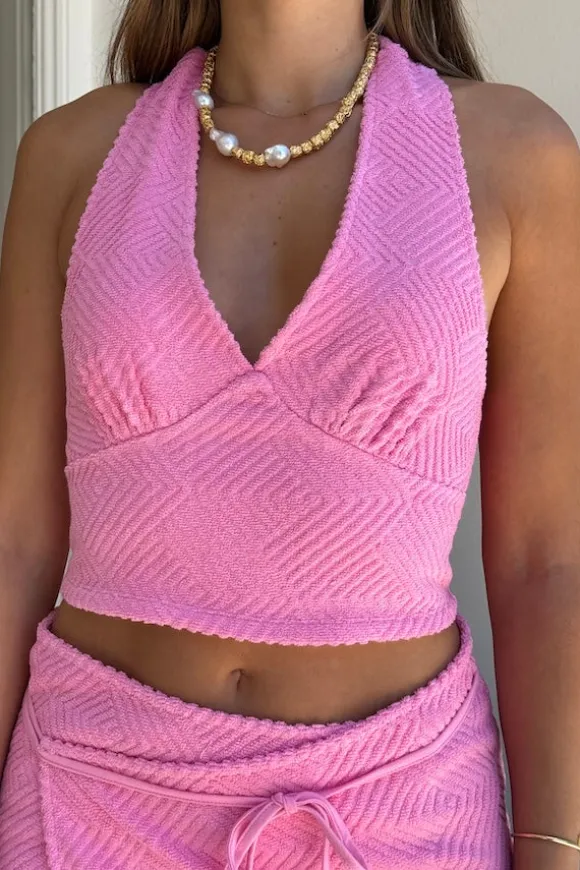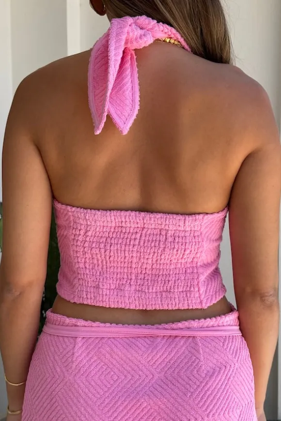Complete the set with The Cali Halter Top by Sneaky Link perfectly complimenting the Cali Wrap Skirt. The Hottest summer companion, designed to effortlessly take you from beach to bar. Featuring a flattering halter neckline, Gathering at the bust and an elasticated shirring panel at the back for added comfort and flexibility. The vibrant hot pink hue gives it a bold, sun-soaked feel. Whether you’re lazing by the pool or out for cocktails under the sun, this halter top offers both style and support for all your summer adventures. This style is made in a non stretch 100% cotton fabric, for the non busty ladies we suggest sizing down for a snug fit.