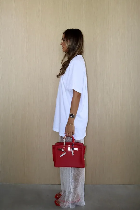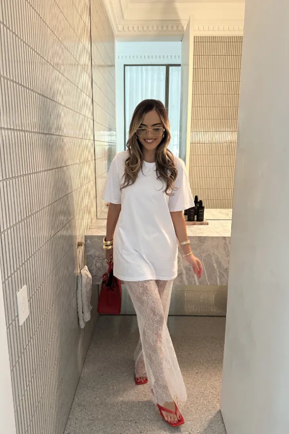 The Lia Tee by Sneaky Link is the ultimate oversized, boxy tee made from 100% cotton. Designed for layering, it pairs perfectly over the Jordi Lace Skirt for a cool, casual vibe, or can be styled separately with your favourite denim for an easy, laid-back look. Featuring short, boxy sleeves and an oversized fit through the body, the length offers a flattering coverage over the bum. Whether you’re dressing up or keeping it casual, the Lia Tee is a versatile wardrobe staple.