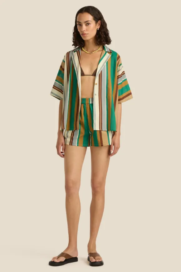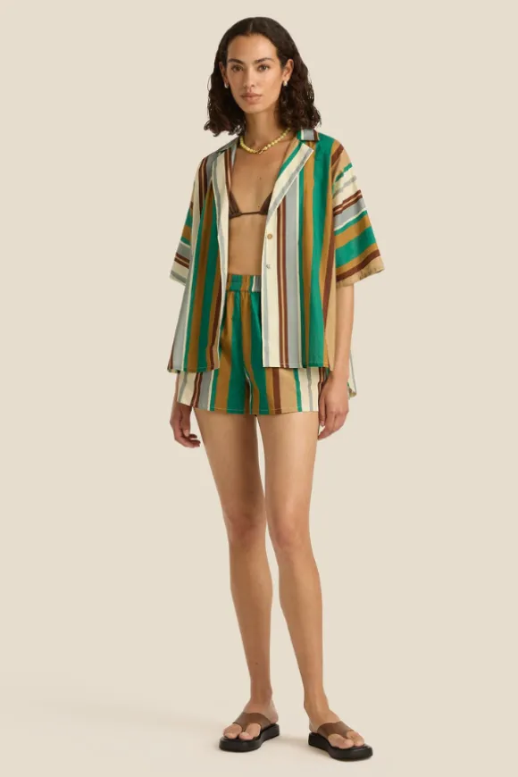 The ultimate summer uniform, the Overswim Set is designed for effortless, breezy dressing. Featuring an oversized button-up shirt and relaxed-fit elastic waist shorts, this lightweight cotton set is perfect for layering over swimwear or pairing with your warm-weather wardrobe staples. Wear the pieces together for a coordinated look or mix and match for endless versatility.