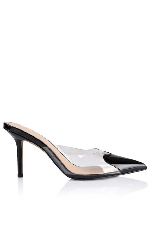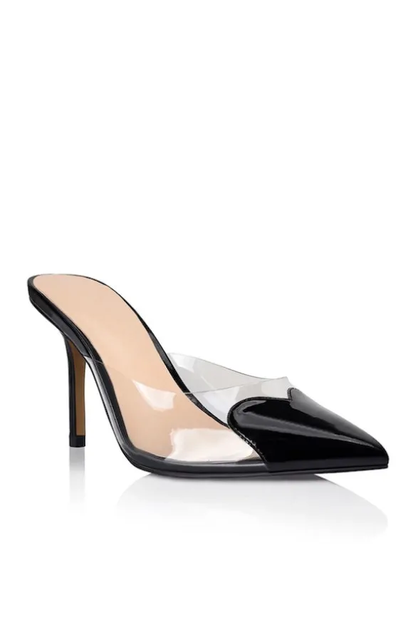 The Lana Wilkinson Raquel is an occasion-wear staple made to compliment any outfit no matter the season. Featuring a transparent perspex front with a black leather heart detailing.