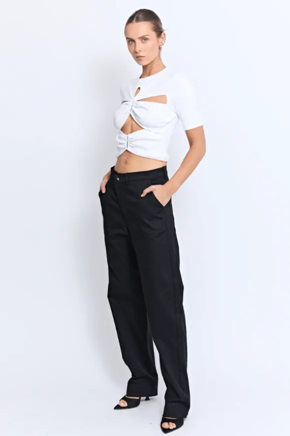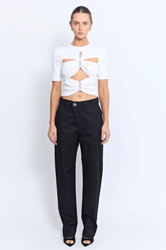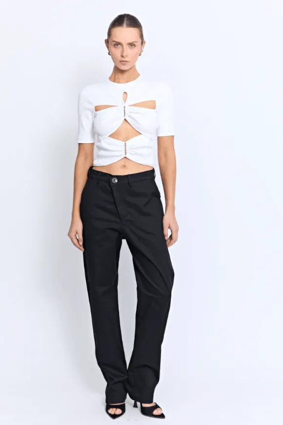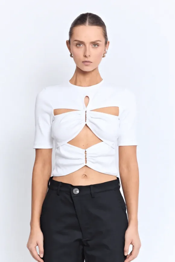 The Vicolo Top effortlessly combines hardware, soft ruching, and cut-outs to create a design that is both cool and edgy. This piece instantly elevates any outfit while providing comfort throughout the day and night, thanks to its cotton rib fabric. Designed and crafted in Sydney, it’s a standout addition to any wardrobe.