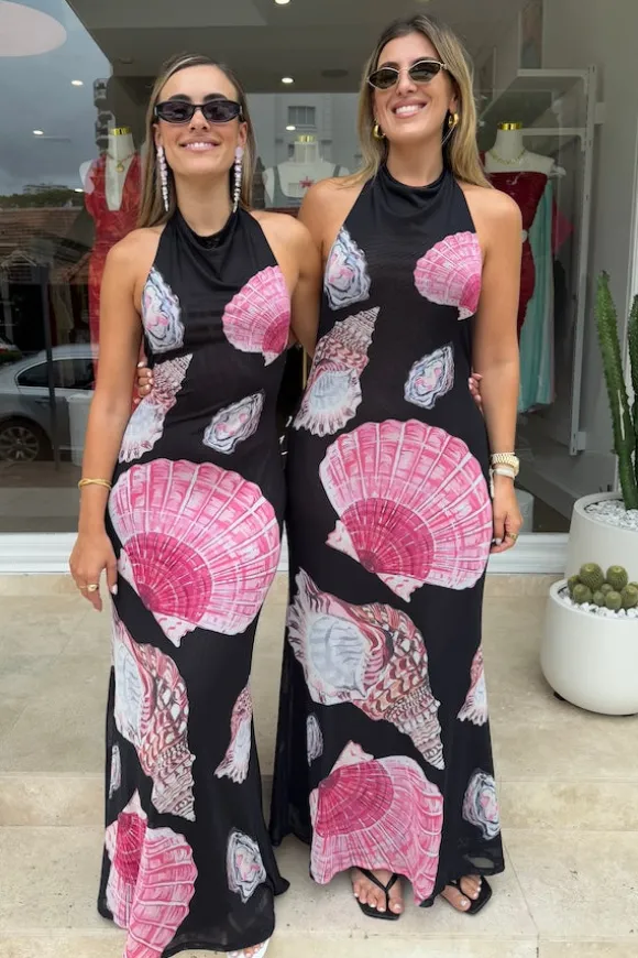 The Ariel Maxi Dress by Sneaky Link is the perfect blend of elegance and allure. Made from a lightweight printed mesh fabric, it features a stunning custom hand-painted shell design, carefully placed to ensure flattering coverage in all the right areas. The floor-length silhouette boasts a halter neckline that slightly cowl’s, transitioning into a low, open back for a touch of sultry sophistication. Whether you’re attending a special event or a stylish soirée, the Ariel Maxi Dress guarantees you’ll make a lasting impression.