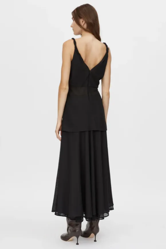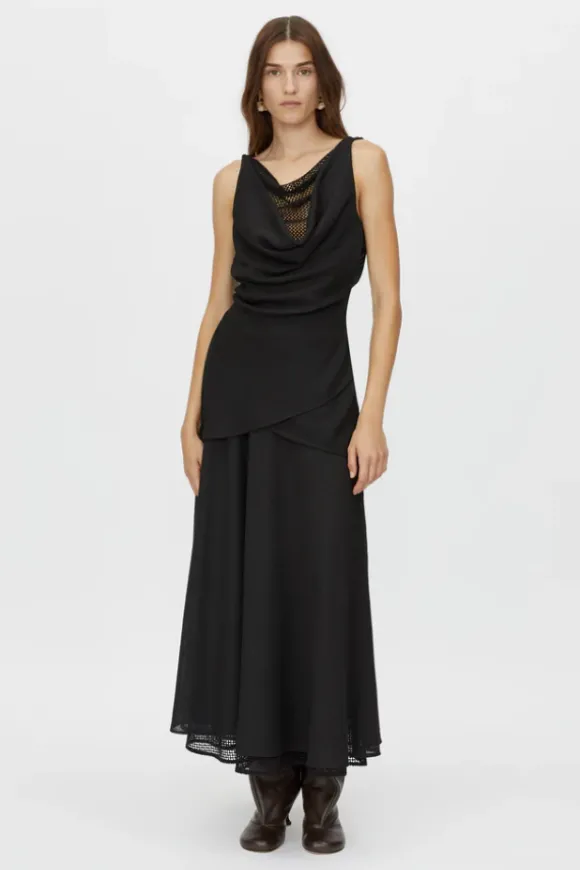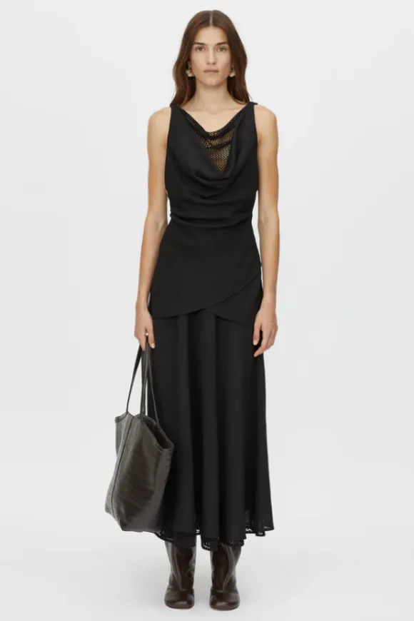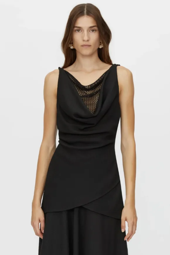 Introducing the Camilla and Marc Attar Top in Black. Designed with effortless elegance, this top features a soft cowl neckline with a contrast draped detail, offering a refined yet modern look. Thoughtful tucks at the waist enhance the silhouette, while twisted back straps and a deep V-back neckline add an alluring touch.