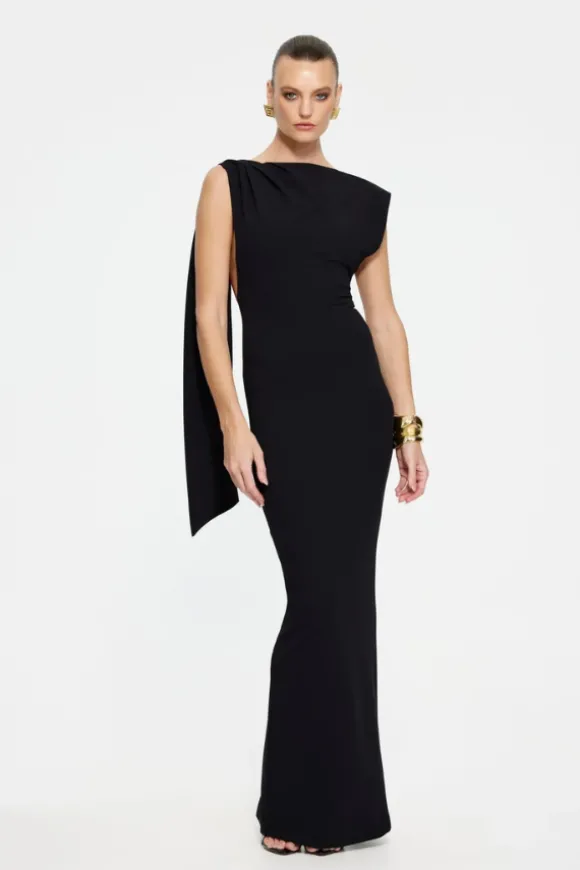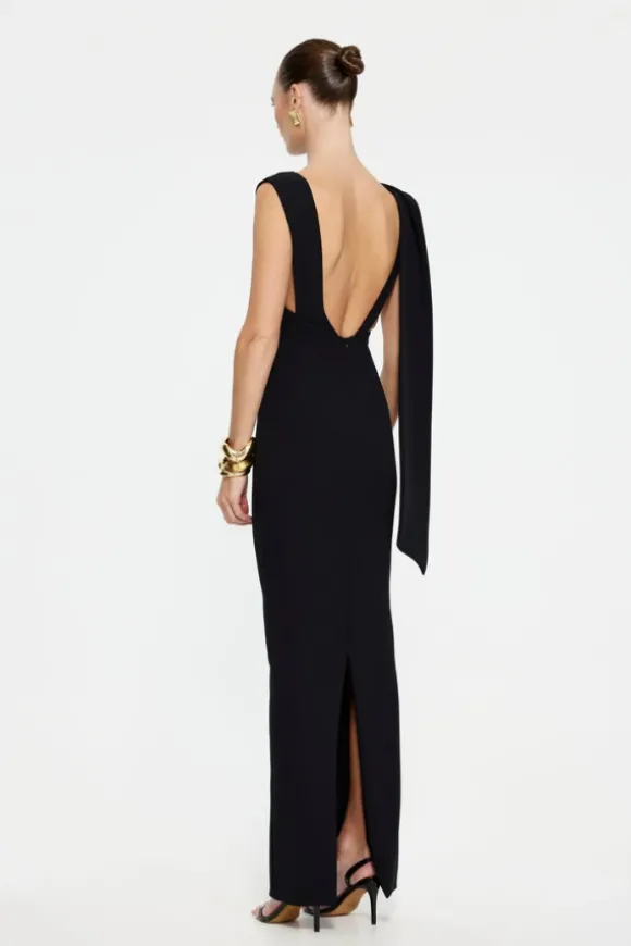 Introducing the Effie Kats Audrey Gown in Black, draws inspiration from the timeless Verona style, featuring a chic straight neckline complemented by an exaggerated low back. The elegant over-the-shoulder detailing adds a touch of sophistication, making it a perfect choice for special occasions.