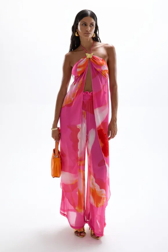 A statement piece from our High Summer ’24 collection, the Coral Drape Top is a delicate and feminine addition to your wardrobe. Designed for versatility, this barely-there style is perfect for both elegant soirées and luxe poolside lounging. The ‘Wildflower’ print, inspired by watercolors, blends electric pink tones with the raw beauty of the Orchid flower.