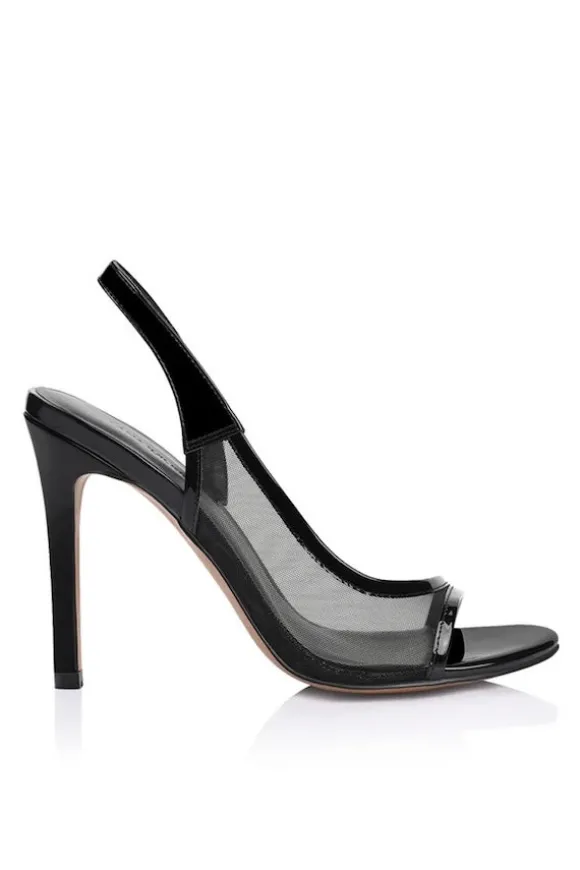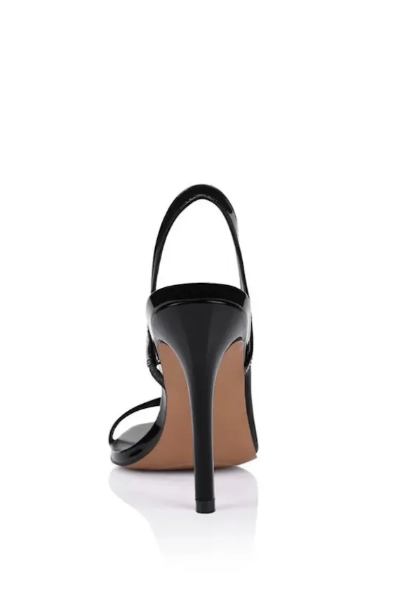 Step into sophistication with the Giselle, a sleek black sandal crafted from breathable mesh and enhanced with glossy patent leather. Featuring a single strap slingback design, feminine round toe, and a sleek stiletto heel, this sandal is ideal for enhancing any ensemble with effortless elegance.
