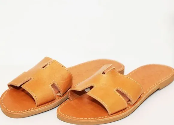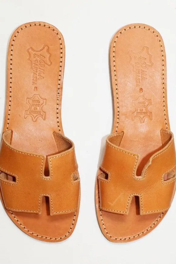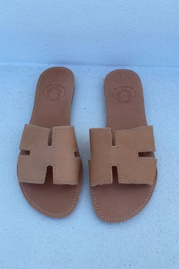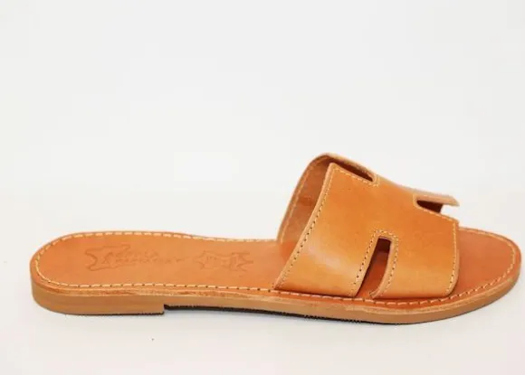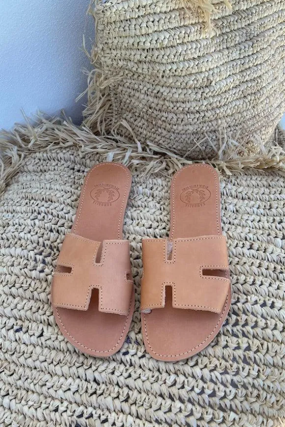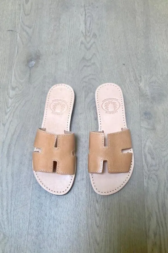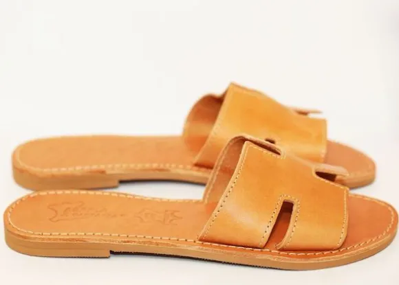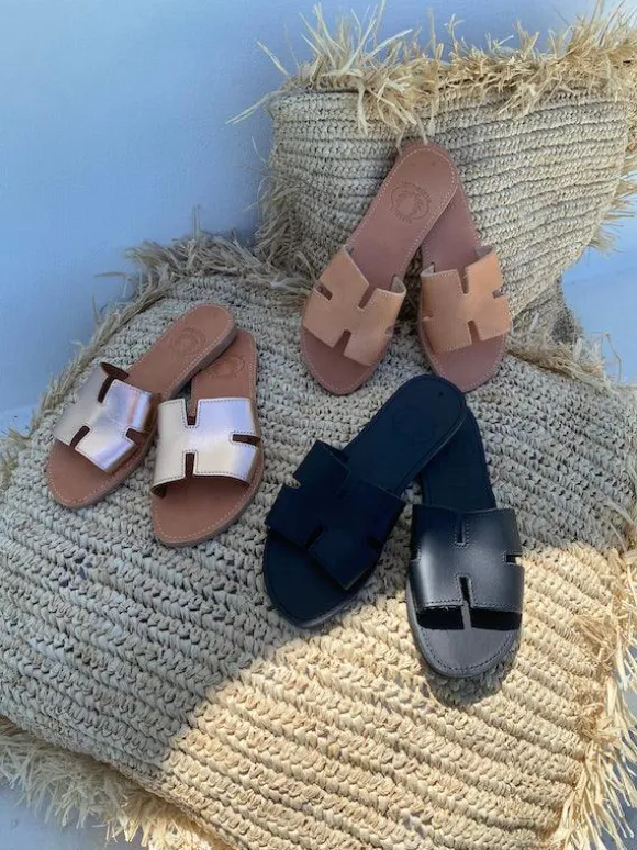 The perfect everyday slides by Girls With Gems that complement any outfit. Handmade leather sandals from Athens, Greece.