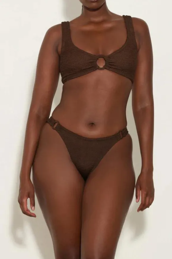 Effortless, modern, minimal. Hallie by Hunza G has understated style to spare with tonal hoop detailing for added intrigue.