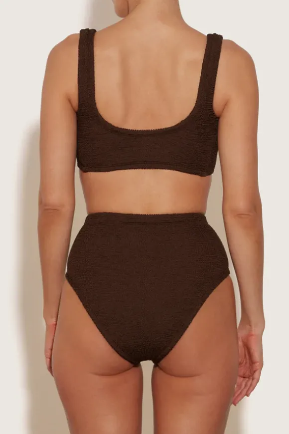 Hunza G took two of their best-selling bikinis, the Juno and Nadine, and combined them to make the ultimate elevated addition to your swim capsule. Comfort and style meet with Jamie.