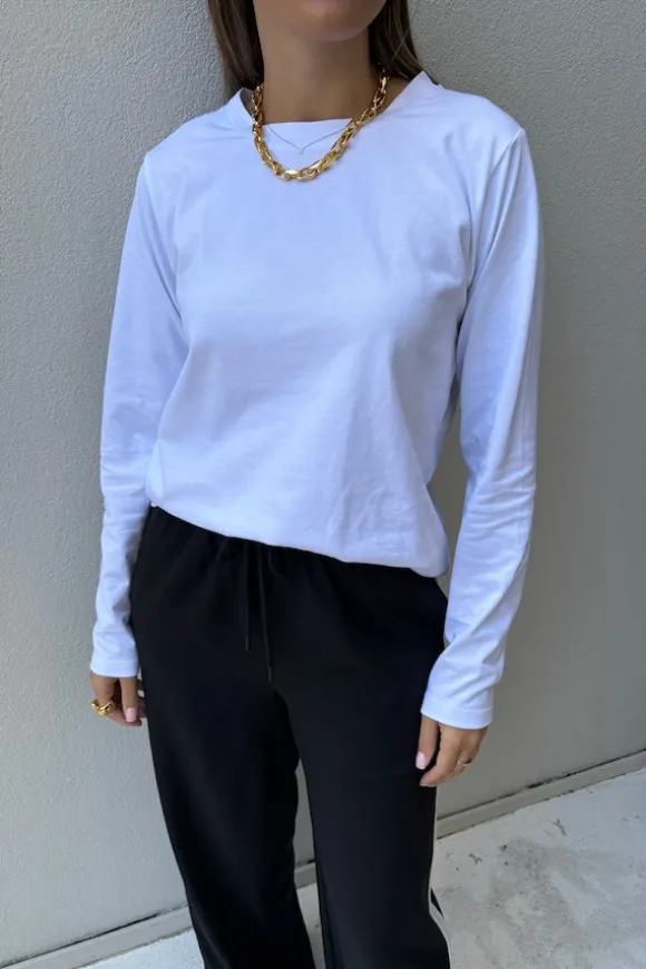 Our Sneaky Link Cotton Long Sleeve Tee is the ultimate wardrobe go-to. Get the perfect capsule wardrobe started with this white tee!