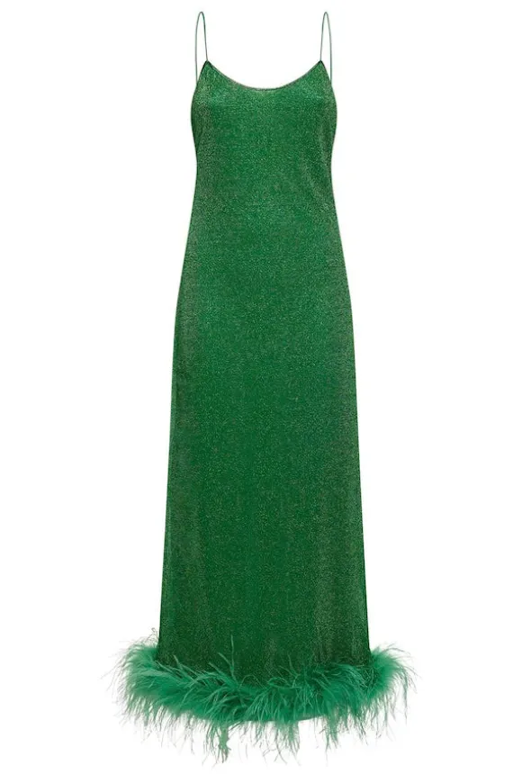 Indulge in the opulence of our Lumière Plumage Slip Dress. This exquisite dress features a classic scoop neck design and is adorned with delicate feathers, giving it a luxurious and ethereal feel. Perfect for making a bold and glamorous statement at any event.