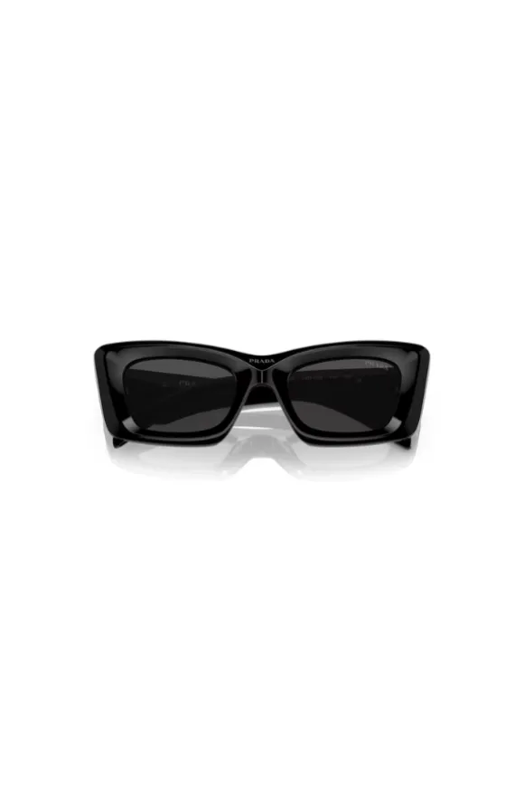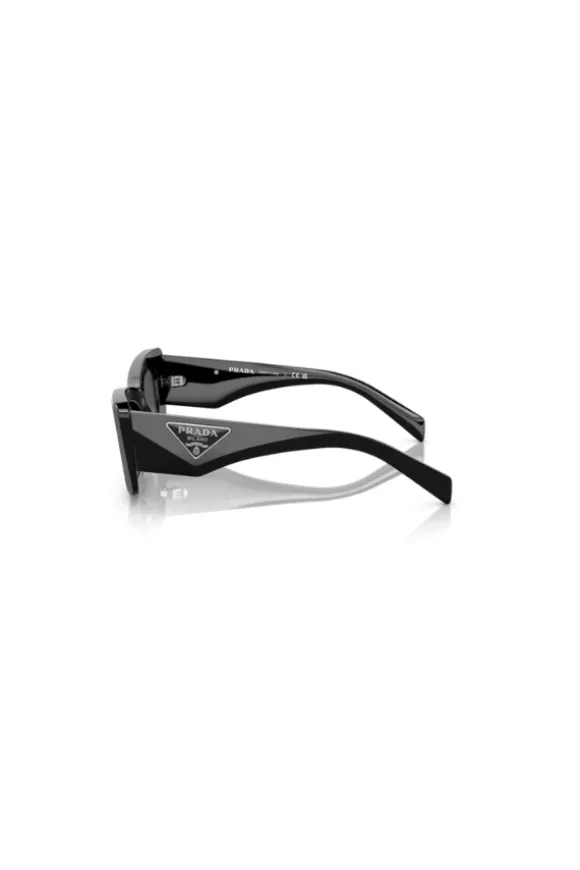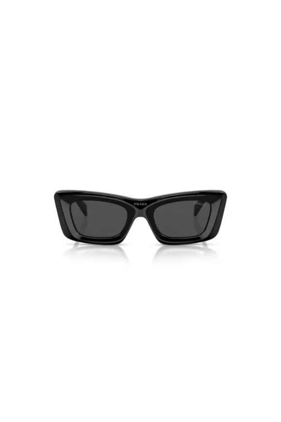 Prada’s futuristic vision is on full display with this bold acetate style. Thick acetate shapes on both the front and temples are enriched with Prada’s Cleo bag triangle logo. Narrow acetate shape with multi-faceted execution creating bold geometries