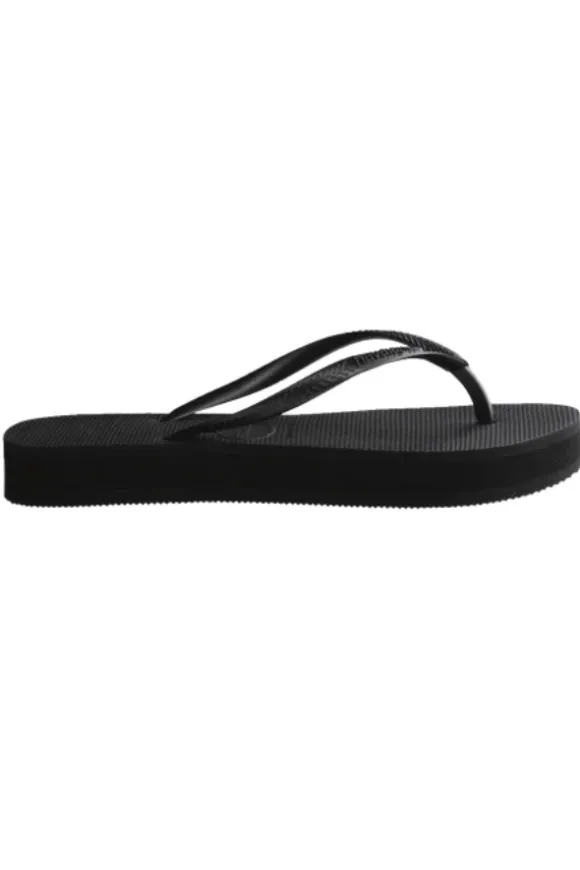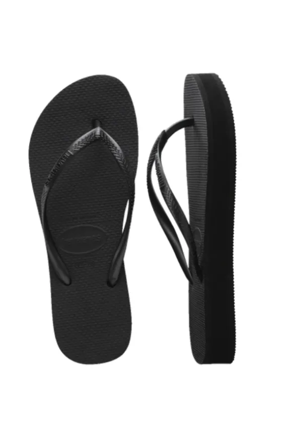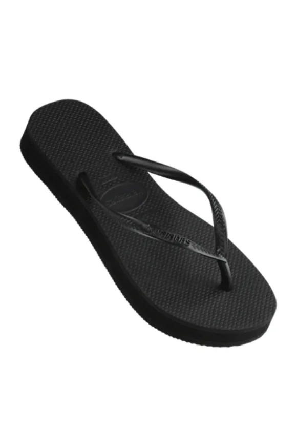 Introducing the Havaianas Slim Flatform Thongs in Black—a stylish elevation of the classic thong design. These sandals feature a 2.5cm platform sole and slim straps, combining fashionable detailing with the comfort and durability you expect from Havaianas. Crafted from flexible premium Brazilian rubber and designed with a signature textured footbed, they are perfect for seamless transitions from day to night.