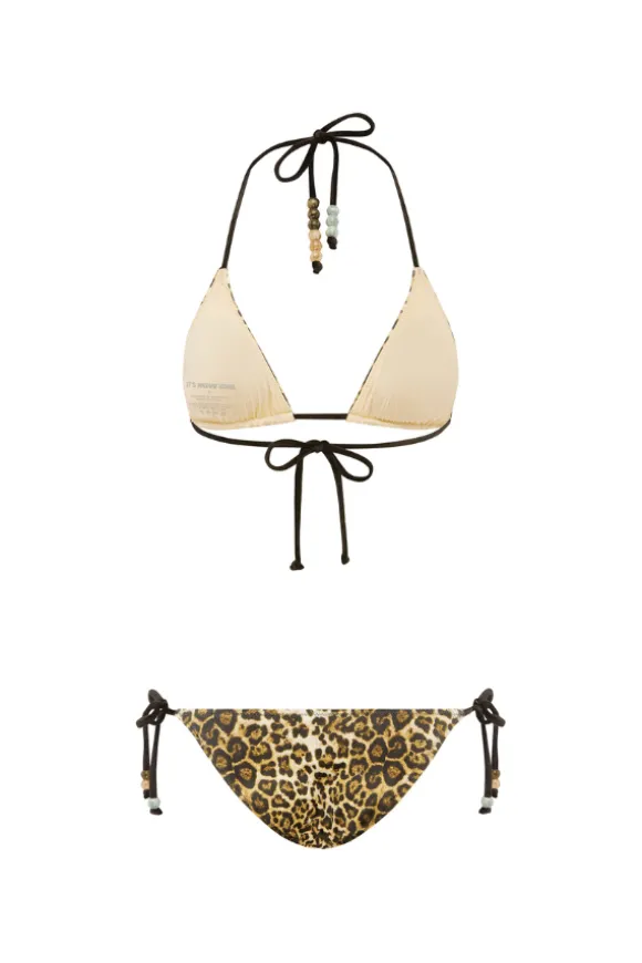 The 90’s Tie Pant in Neptune blends a clash of animal prints with metallic hues for an unforgettable statement. Featuring adjustable contrasting print ties adorned with marble beads, this bikini bottom embodies retro-inspired glamour with a modern edge.