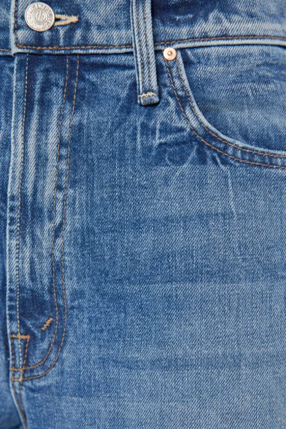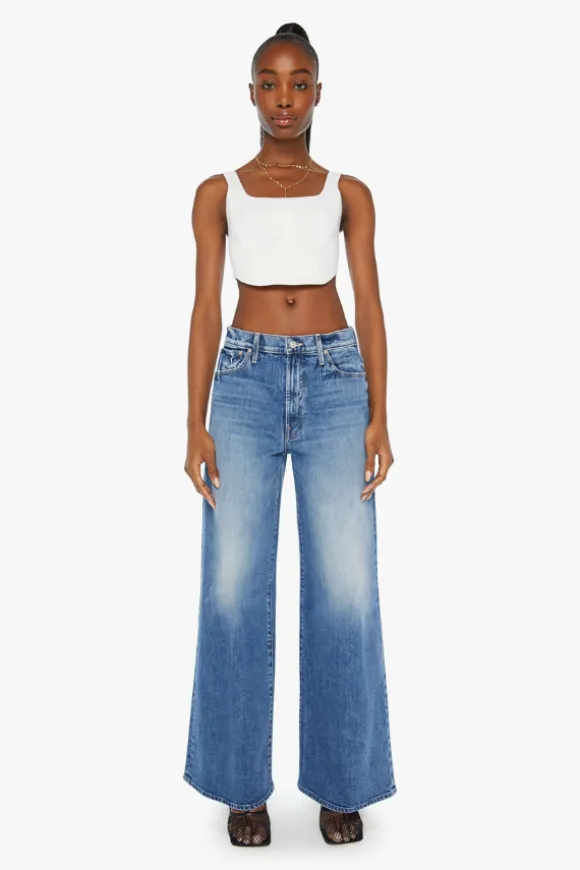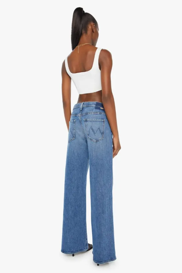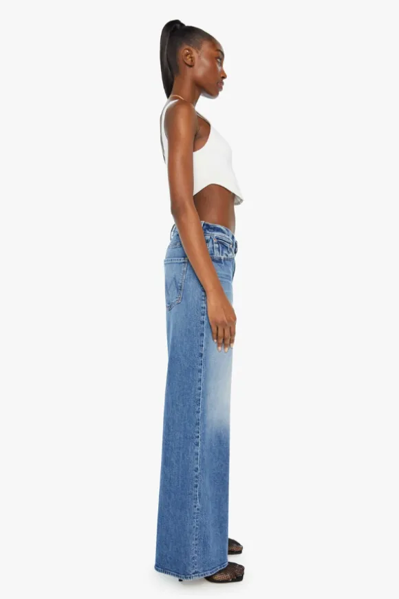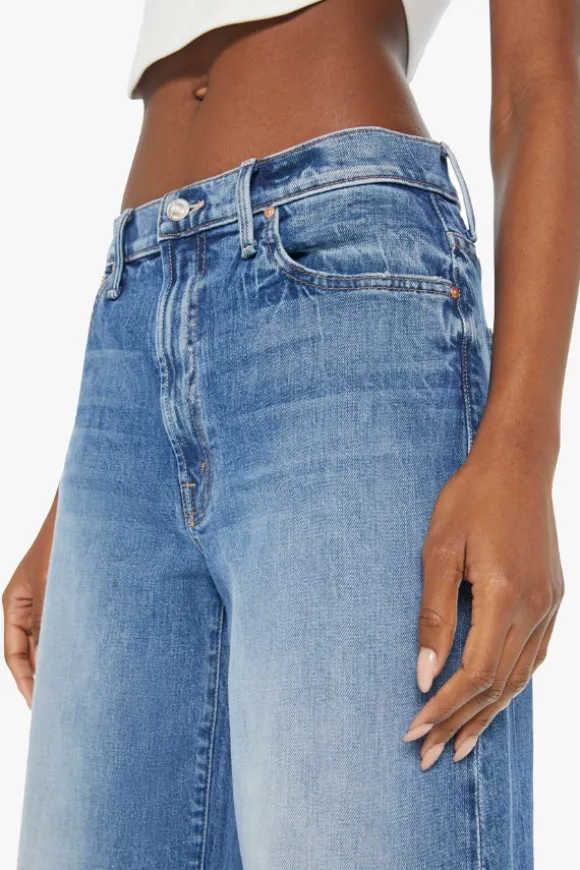 Introducing the MOTHER The Ditcher Roller Zip Skimp in Music Is The Medium, a nod to 70s-inspired style with a modern twist. These wide-leg jeans feature a high rise with a slightly dropped crotch, low-set back pockets, and a slouchy fit designed to sit comfortably on the hips. The mid-blue wash, complete with whiskering and knee fading, adds a vintage vibe, while the 31-inch inseam offers a flattering length.